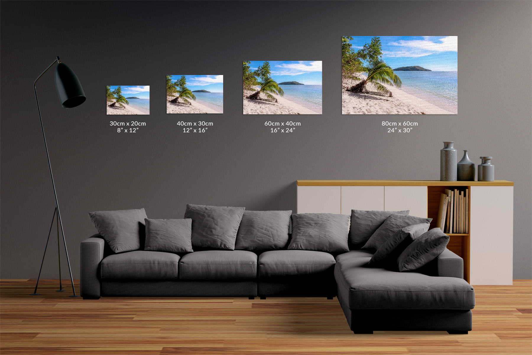 The photos are printed using the best water-resistant matte cotton material and the latest industry-leading UV resistant HP Latex Ink technology, which prevents the colours from fading over time. Our printing is solvent free, meaning our canvas prints are safe for children and those with allergies.