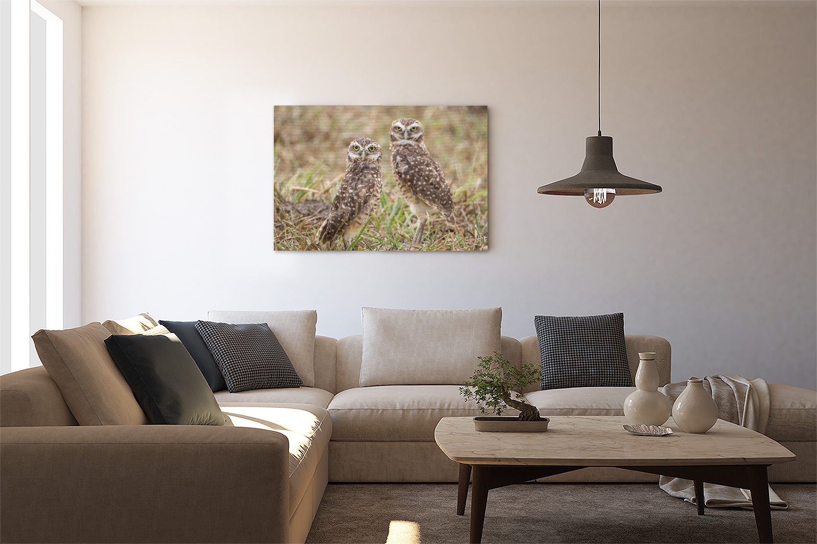 This photograph of two burrowing owls was taken at Los Llanos in Colombia. Available for purchase as a canvas print in a range of sizes. More information can be found below.