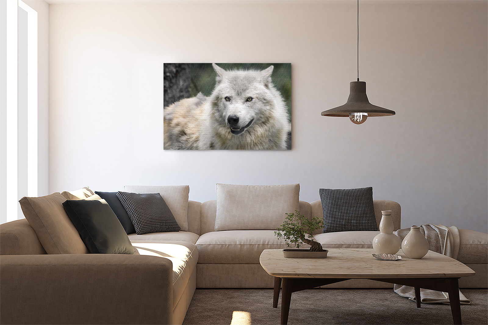 This photograph of a wolf was taken in the heart of the Rocky Mountains in Alberta, Canada. Available for purchase as a canvas print in a range of sizes. More information can be found below.