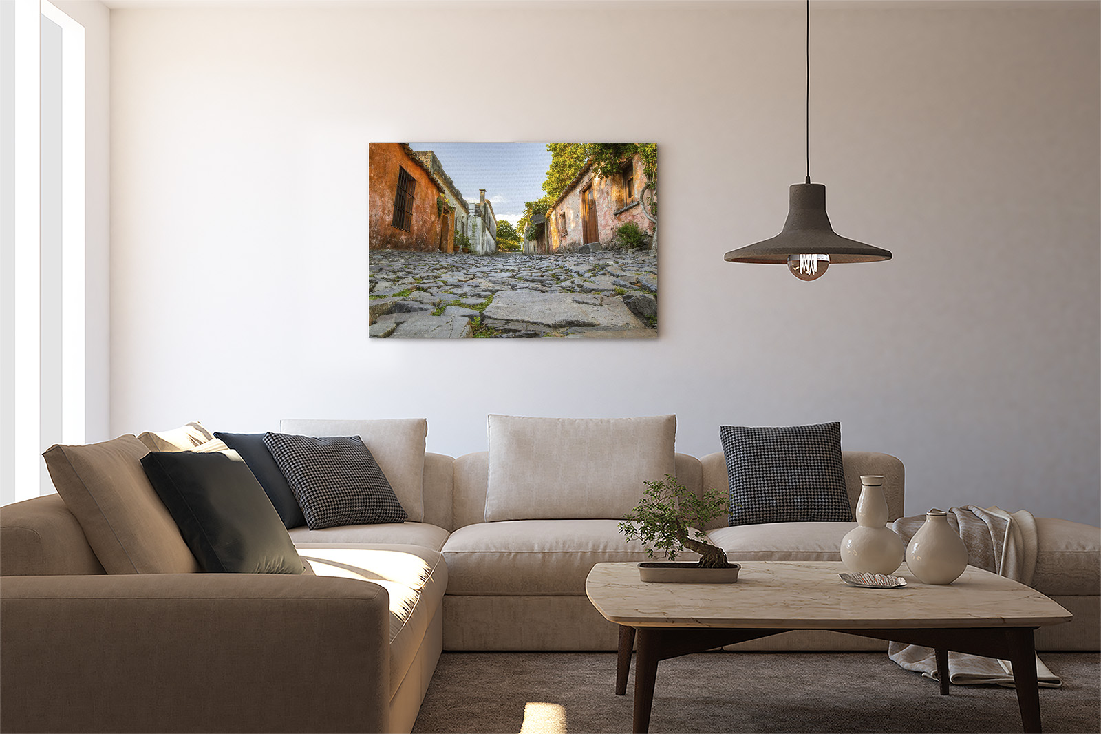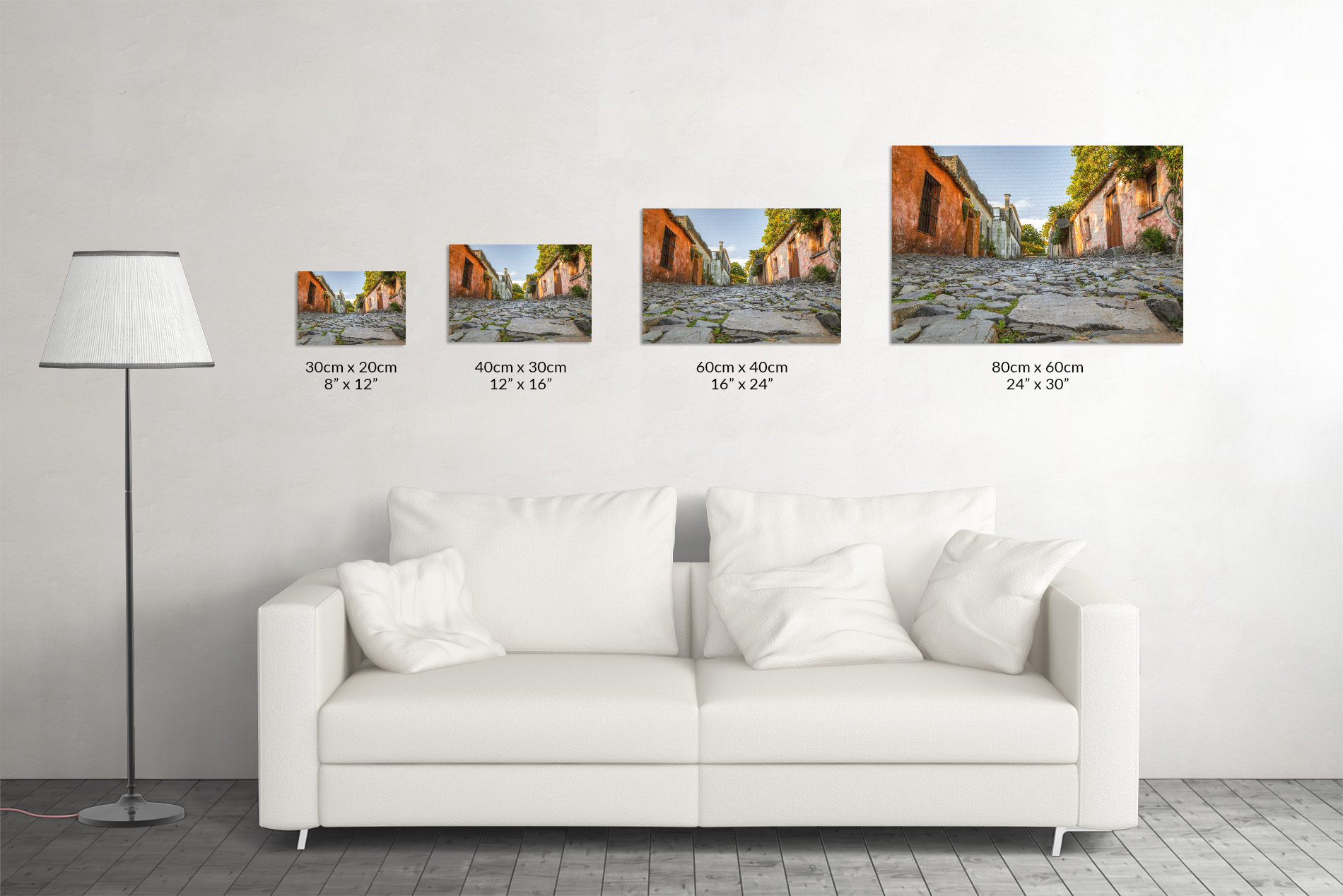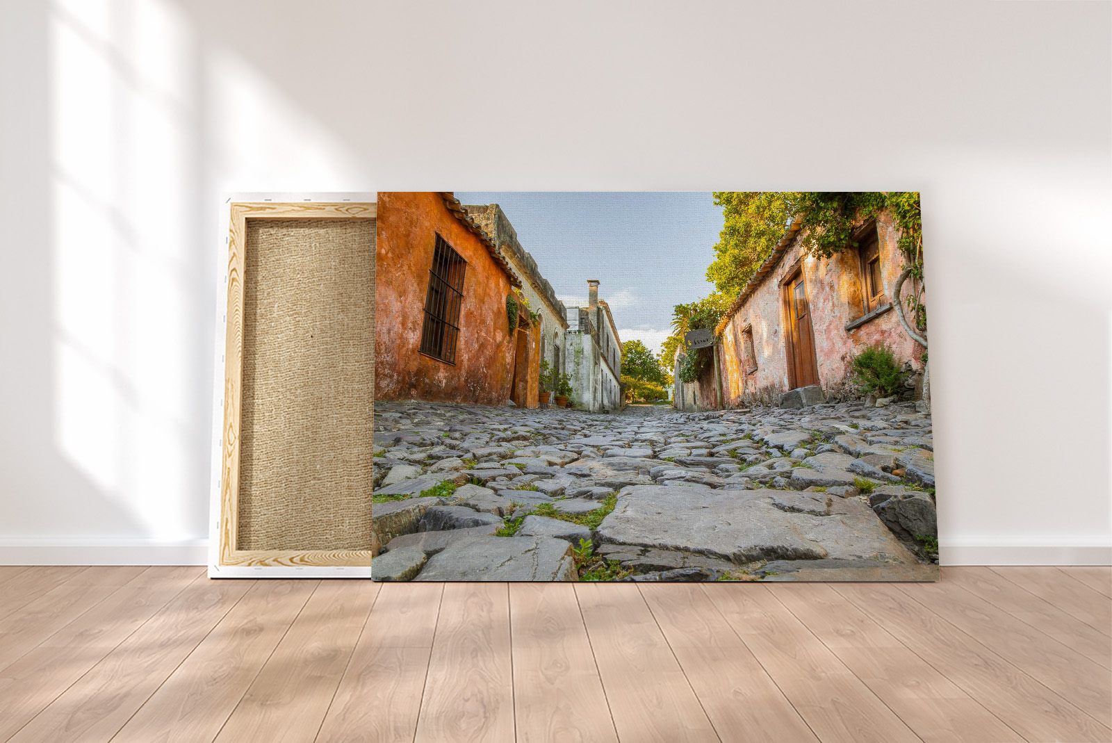 This photograph of a cobbled street was taken in the historic town of Colonia in Uruguay. Available for purchase as a canvas print in a range of sizes. More information can be found below.