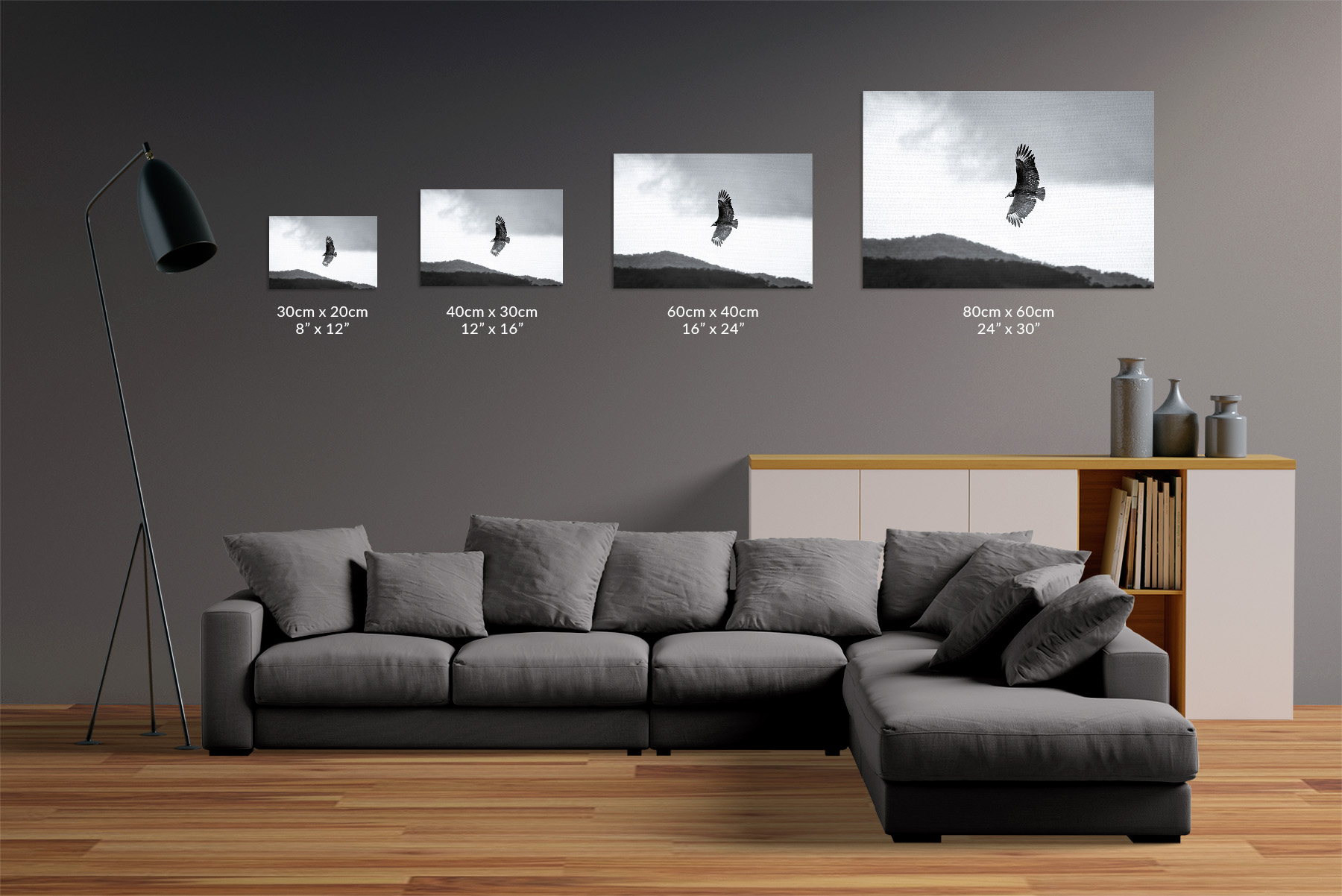 All of the canvases consist of a hand-assembled stretcher frame with a folded edge made from the highest quality timber wooden frame that is approximately 2cm (¾”) thick ensuring you receive an elegant, lightweight and robust canvas.