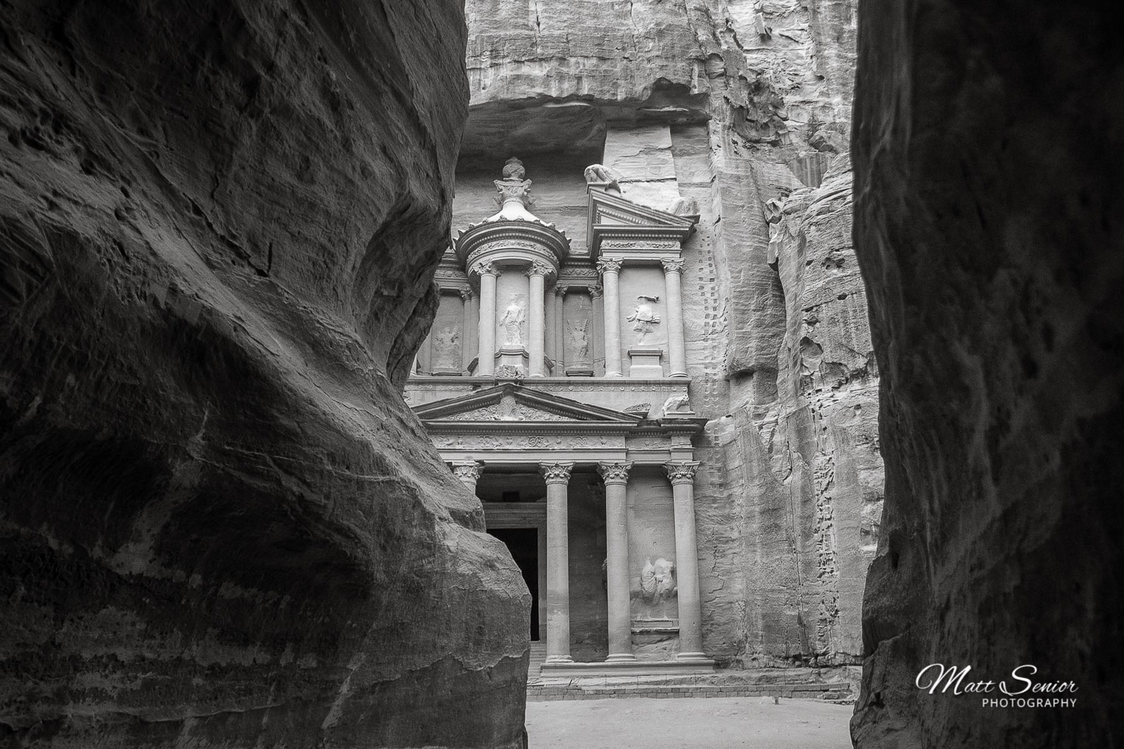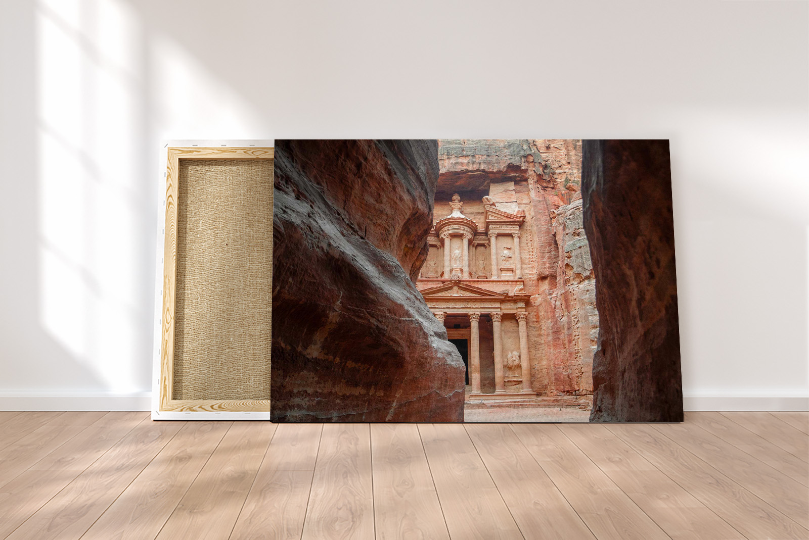 This photograph shows the first glimpse of the Treasury at Petra. Available for purchase as a canvas print in a range of sizes. More information can be found below.